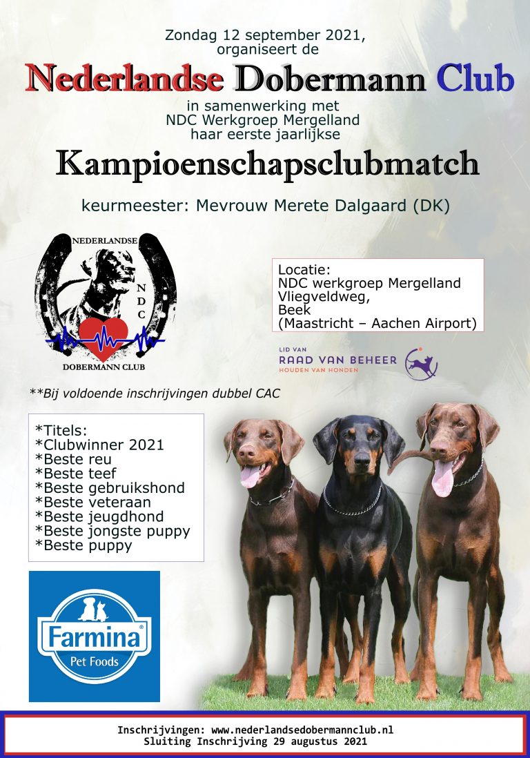 Ondanks de huidige situatie m.b.t. Covid-19 en de maatregelen die momenteel gelden doet het mij veel genoegen dat ik u kan meedelen dat de voorbereidingen voor onze eerste kampioenschapsclubmatch (KCM) in volle gang zijn. De KCM is hét jaarlijkse evenement binnen de NDC om in levenden lijve, van jong tot oud, onze Dobermann te kunnen bewonderen en op zijn exterieur te laten beoordelen onder het toeziend oog van een keurmeester.